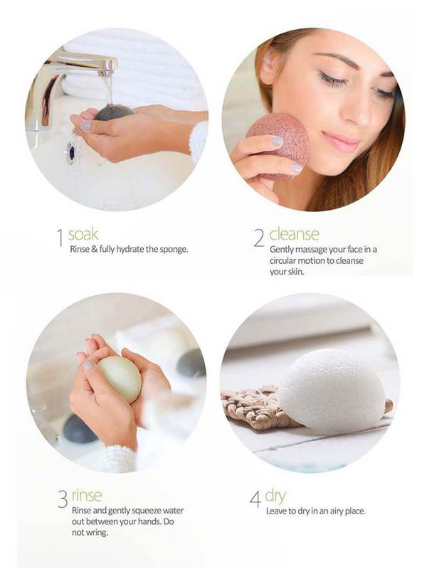 Easy to use, just rinse and hydrate the sponge. Gently cleanse in circular motion. Rinse sponge and squeeze/ not wring to remove excess water. Leave to dry in an airy place ( they have a string on, so perfect for hanging)