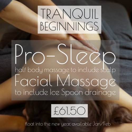 Float into the New Year with this January/ February package. To include a pro-sleep half body massage to ease you into the New Year. With an ice spoon drainage massage to the face to lift and sculpt, leaving your skin feeling vibrant and fresh.